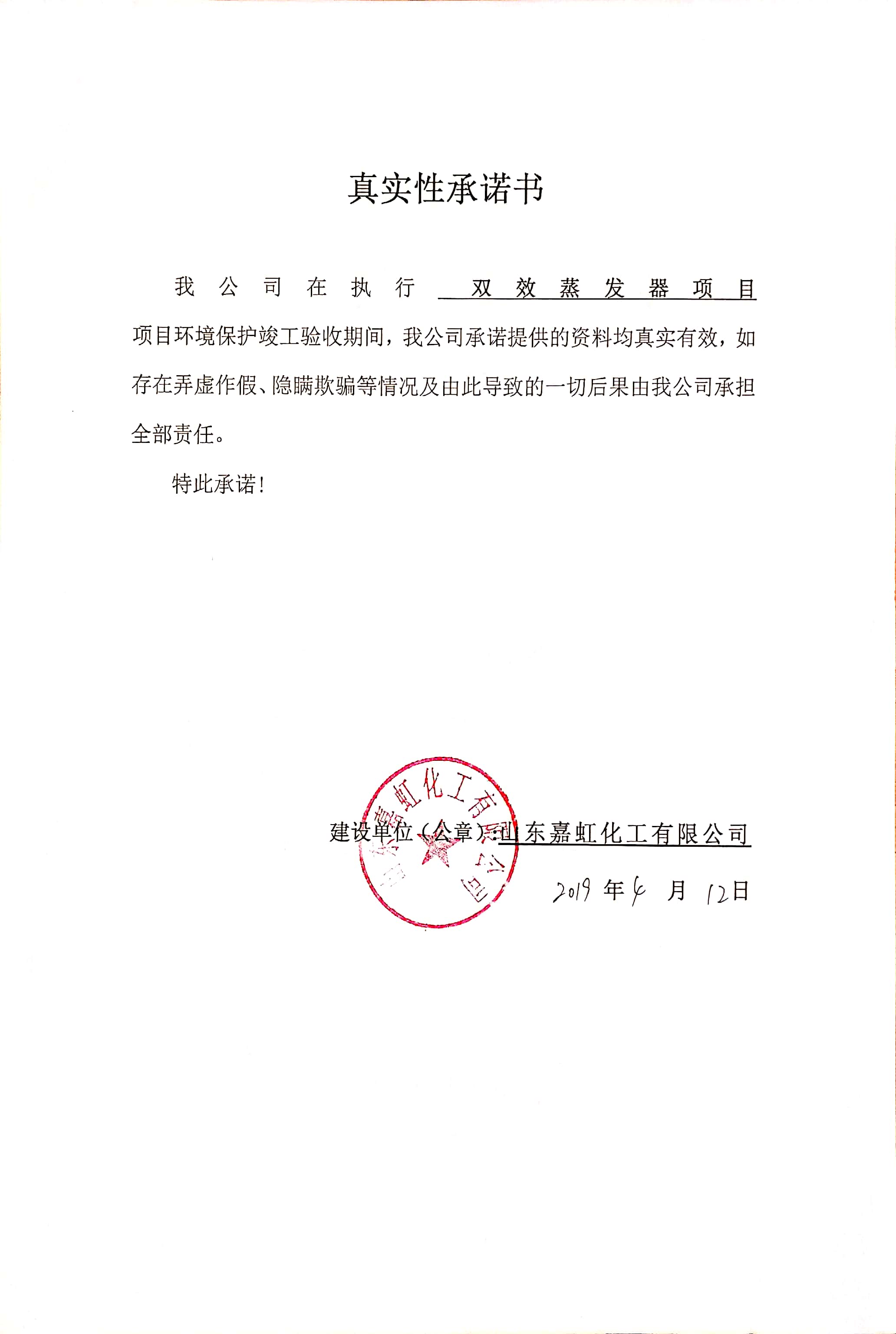 附件5:雙效蒸發(fā)器項目 真實性承諾書